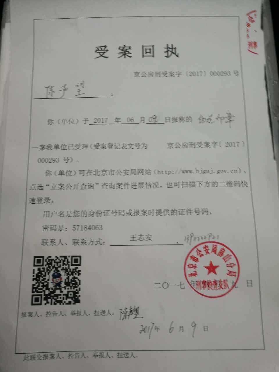 关于该公司注册时伪造我司印章一事,我司于2017年6月9日向北京市公安局房山分局报案,并于2017年7月7日收到北京市公安局房山分局出具的《中国华宇经济发展有限公司印章被伪造一案已受理并立案侦查》立案告知书。